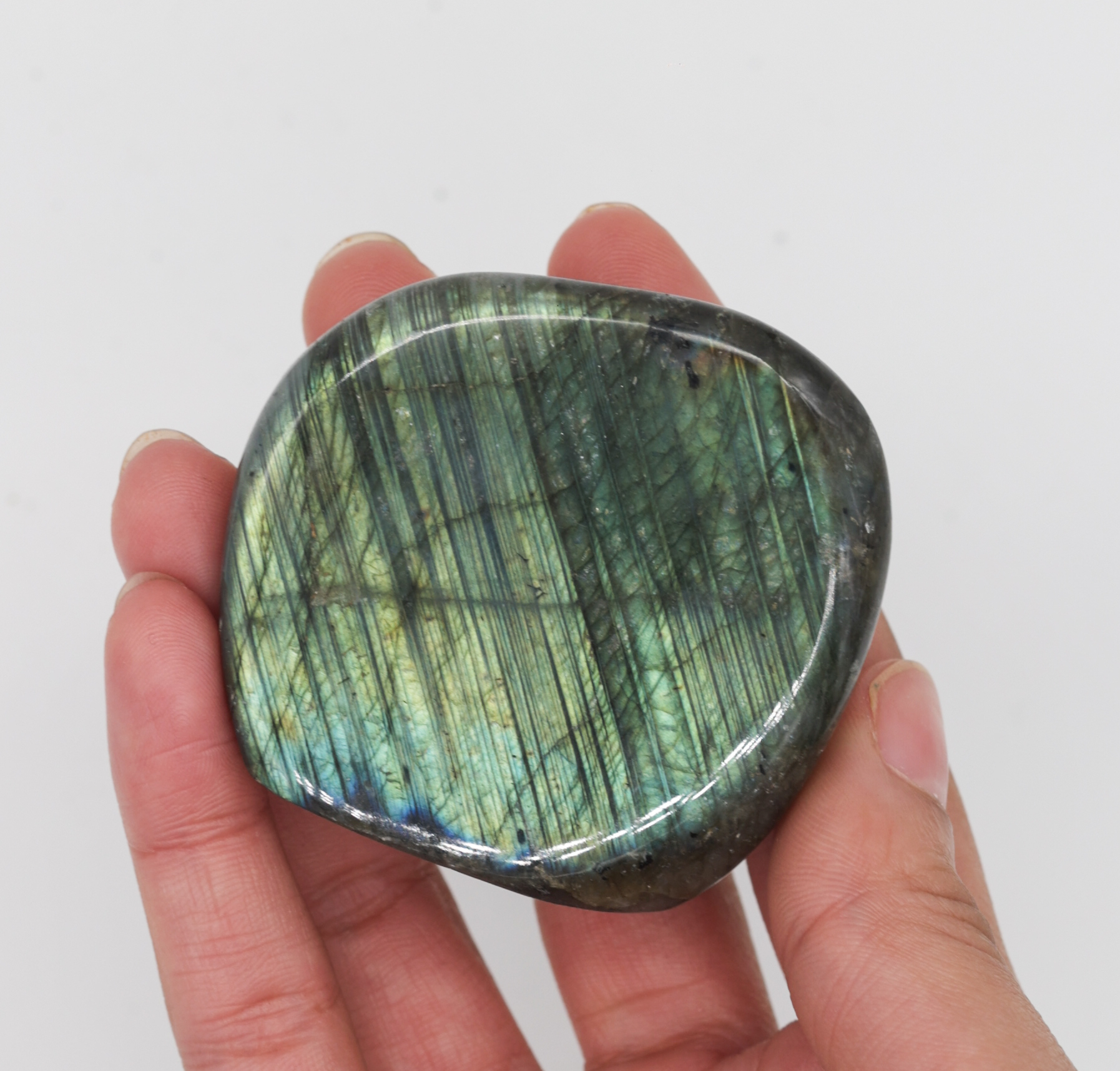 Pièce unique – Labradorite forme libre – reflets verts flash – qualité extra